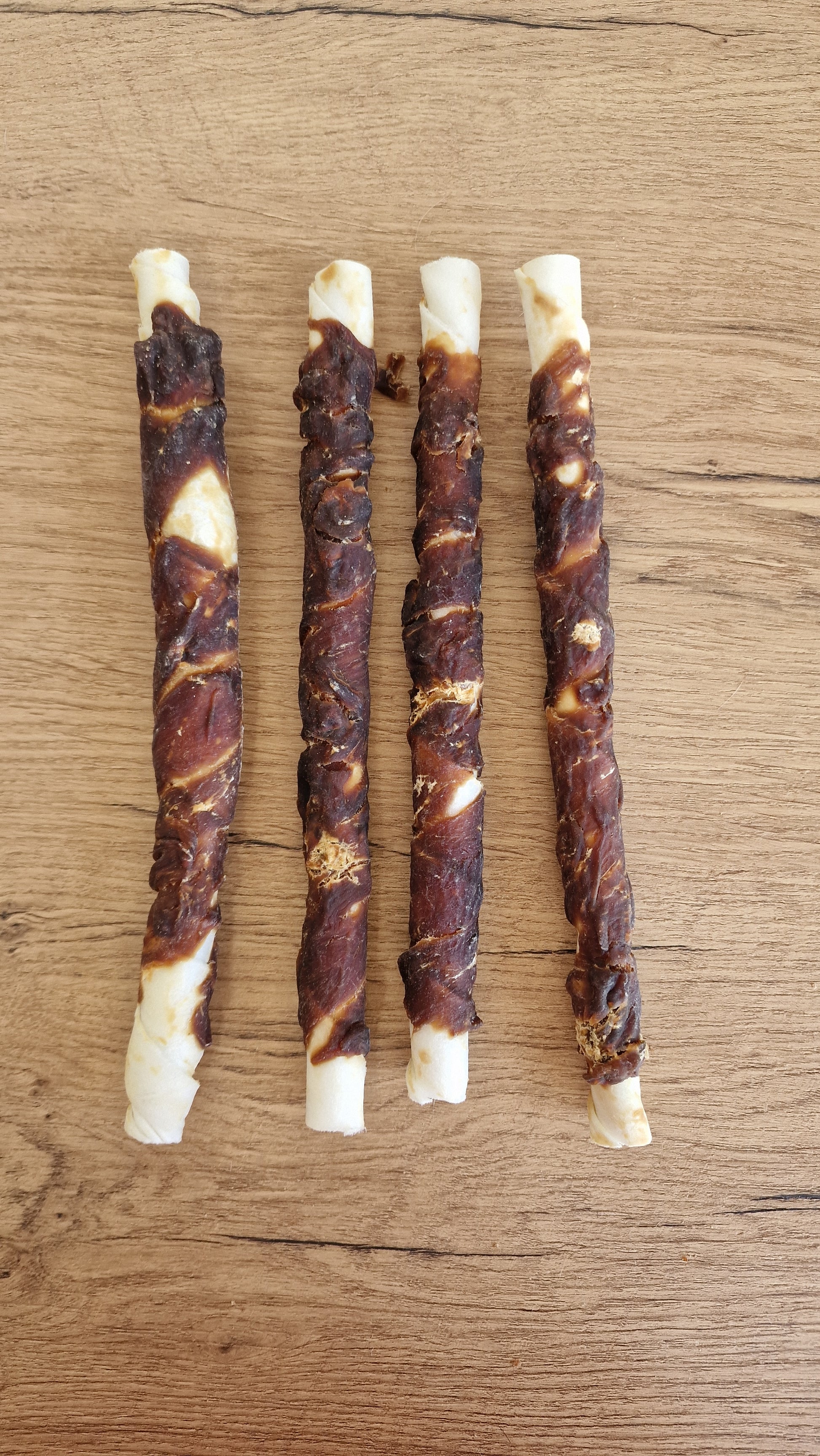 Combinación irresistible: Hechos con un 52% de pato natural y 41% de cuero crudo, estos giros son ideales para satisfacer el instinto de masticar de tu perro mientras cuidan su salud dental.